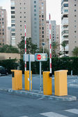 Bariera blokująca drogę do płatnego parkingu. System płatności za parking.