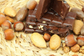 pasek czekolady i orzechów na maty wiklinowe