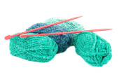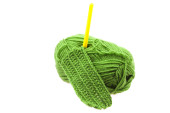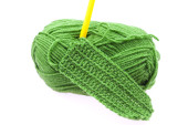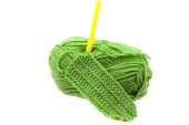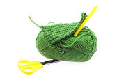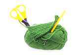 motek wełny, szydełko i dzianiny kawałek na białym tle