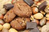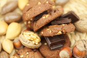 płatki owsiane ciastka, czekolady i orzechów na maty wiklinowe