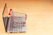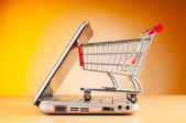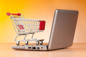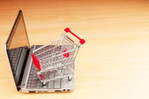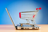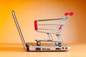 Internet online zakupy koncepcja z komputera i koszyk