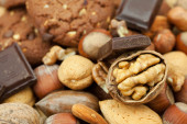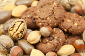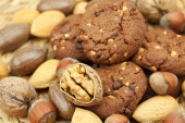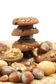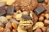 płatki owsiane ciastka, czekolady i orzechów na maty wiklinowe