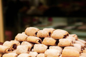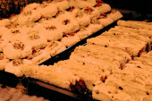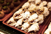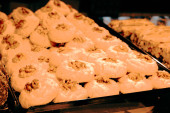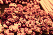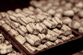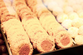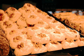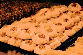 Grupa różnorodnych ciasteczek. Chipsy czekoladowe, rodzynki owsiane, biała czekolada
