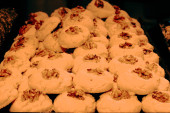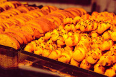 Grupa różnorodnych ciasteczek. Chipsy czekoladowe, rodzynki owsiane, biała czekolada