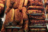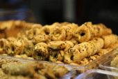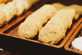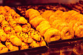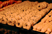 Grupa różnorodnych ciasteczek. Chipsy czekoladowe, rodzynki owsiane, biała czekolada
