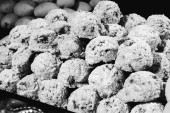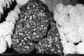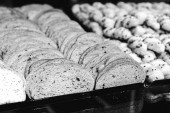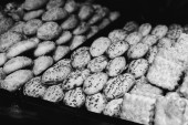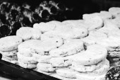 Grupa różnorodnych ciasteczek. Chipsy czekoladowe, rodzynki owsiane, biała czekolada