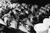 Grupa różnorodnych ciasteczek. Chipsy czekoladowe, rodzynki owsiane, biała czekolada