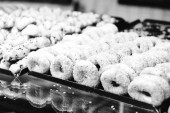 Grupa różnorodnych ciasteczek. Chipsy czekoladowe, rodzynki owsiane, biała czekolada