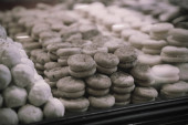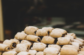 Grupa różnorodnych ciasteczek. Chipsy czekoladowe, rodzynki owsiane, biała czekolada