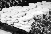 Grupa różnorodnych ciasteczek. Chipsy czekoladowe, rodzynki owsiane, biała czekolada