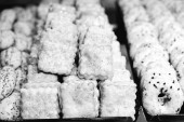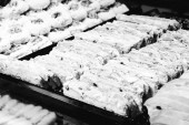 Grupa różnorodnych ciasteczek. Chipsy czekoladowe, rodzynki owsiane, biała czekolada