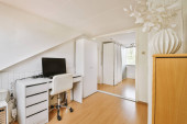 Wnętrze współczesnego mieszkania w minimalnym stylu z przestronnym korytarzem z białymi ścianami