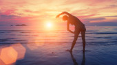 Młoda kobieta pływająca w morzu o wschodzie słońca. Wysokiej jakości zdjęcie