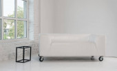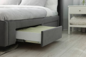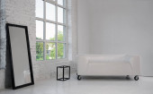 Białe jednorazowe kapcie na czarnej półce w hotelu z przestrzenią do kopiowania