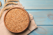 Zdjęcie "Ziarna pszenicy i kolce na białym drewnianym stole, płaskie układanie. Miejsce na tekst" może być wykorzystywane do celów osobistych i komercyjnych zgodnie z warunkami zakupionej licencji Royalty-free. Obraz jest dostępny do pobrania w jakości wysokiej rozdzielczości do 5760x3840.