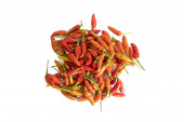 czerwona papryka chili na białym talerzu. izolowany na białym