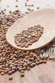 Organiczny soczewica z drewnianymi FAŁSZ na płótnie tło