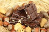 pasek czekolady i orzechów na maty wiklinowe