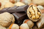 pasek czekolady i orzechów na maty wiklinowe