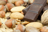 pasek czekolady i orzechów na maty wiklinowe