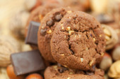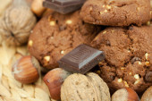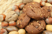 płatki owsiane ciastka, czekolady i orzechów na maty wiklinowe