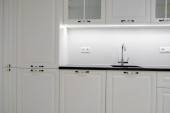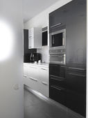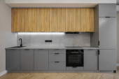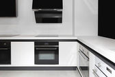 Kuchenka elektryczna i okap kuchenny wbudowane w meble kuchenne