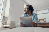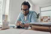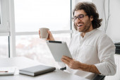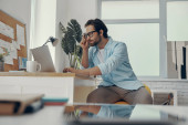 Zdjęcie "Szczęśliwy młodzieniec korzystający z technologii siedząc w biurze" może być wykorzystywane do celów osobistych i komercyjnych zgodnie z warunkami zakupionej licencji Royalty-free. Obraz jest dostępny do pobrania w jakości wysokiej rozdzielczości do 5760x3840.