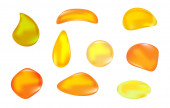 Bursztynowy kamień izolowany na białym tle. Kropla żywicy drzewnej. Cenny kamień mineralny lub nugget. Surowce do biżuterii. Jasny kamień szlachetny. Kawałek żółtego nieprzezroczystego naturalnego bursztynu. Ilustracja wektora