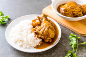 Zdjęcie "Afgański kurczak w zielonym curry lub Hariyali tikka kurczaka hara masala z ryżem - azjatycki styl żywności" może być wykorzystywane do celów osobistych i komercyjnych zgodnie z warunkami zakupionej licencji Royalty-free. Obraz jest dostępny do pobrania w jakości wysokiej rozdzielczości do 5760x3840.