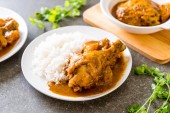 Afgański kurczak w zielonym curry lub Hariyali tikka kurczaka hara masala z ryżem - azjatycki styl żywności