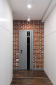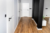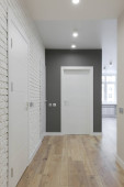 Białe drzwi wejściowe wewnątrz mieszkania w nowoczesnym wnętrzu