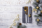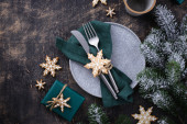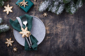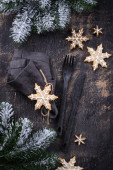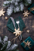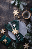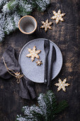 Christmas and New year table setting with gingerbread cookies
