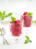 zbliżenie wiśnia granit w szklanej misce, na tle drewniane kolor