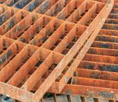 Pomarańczowy dach. Materiały budowlane. Materiał dachowy. Stos płytek. Zbliżenie.