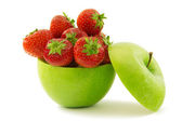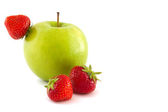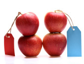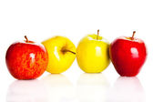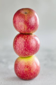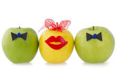 trzy kolorowe jabłka z naklejki Nota, horyzontalnych