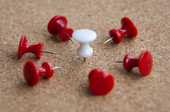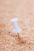 Białe pinezki przypięte do drewnianego tła. Przestrzeń kopiowania