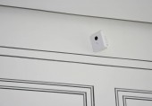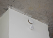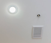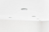 Zbliżenie sufitu z systemem sygnalizacji dymu, czujnik dymu wewnątrz.
