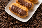 ciasto z czekolady, kawa i orzechy leżącego na mat bambusowych