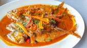 Tajskie jedzenie stylu: toppted Ryba smażona z sosem chili