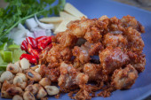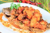 Tajskie jedzenie stylu: toppted Ryba smażona z sosem chili