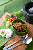 Tajlandii food Green curry intensywna zupa z ryżem i wieprzowina z grilla