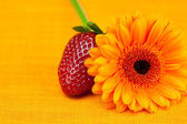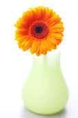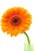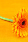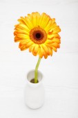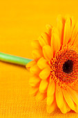 Gerbera kwiat w czarny kubek pomarańczowym tkaniny