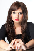 piękna brunetka dziewczyna z artystyczna koronkowe manicure na czarny