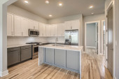 Zdjęcie "Nowoczesna kuchnia mieszczańska z gotowymi do wprowadzenia urządzeniami ze stali nierdzewnej. Koncepcja inwestycji, wynajmu lub własności nieruchomości." może być wykorzystywane do celów osobistych i komercyjnych zgodnie z warunkami zakupionej licencji Royalty-free. Obraz jest dostępny do pobrania w jakości wysokiej rozdzielczości do 5760x3840.