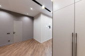 Białe drzwi wejściowe wewnątrz mieszkania w nowoczesnym wnętrzu