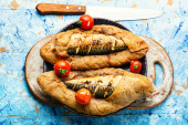 Zdjęcie "Pyszne makrele pieczone w cieście. Ryby pieczone w chlebie" może być wykorzystywane do celów osobistych i komercyjnych zgodnie z warunkami zakupionej licencji Royalty-free. Obraz jest dostępny do pobrania w jakości wysokiej rozdzielczości do 5760x3840.