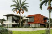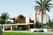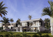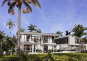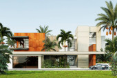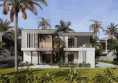 Wizualizacja 3D nowoczesnej willi w Dubaju. luksusowa architektura. Dom w nowoczesnym stylu