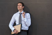 portret pewność biznesmen w jego biurze stojący w pobliżu em