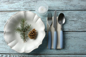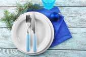 Zdjęcie "Niebieskie i białe Boże Narodzenie tabela stylowa na obrus szary tło" może być wykorzystywane do celów osobistych i komercyjnych zgodnie z warunkami zakupionej licencji Royalty-free. Obraz jest dostępny do pobrania w jakości wysokiej rozdzielczości do 5760x3840.