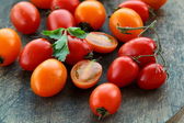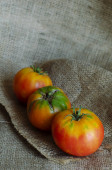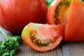 dojrzałe pomidory naturalne duże rozmiary na drewnianym stołem